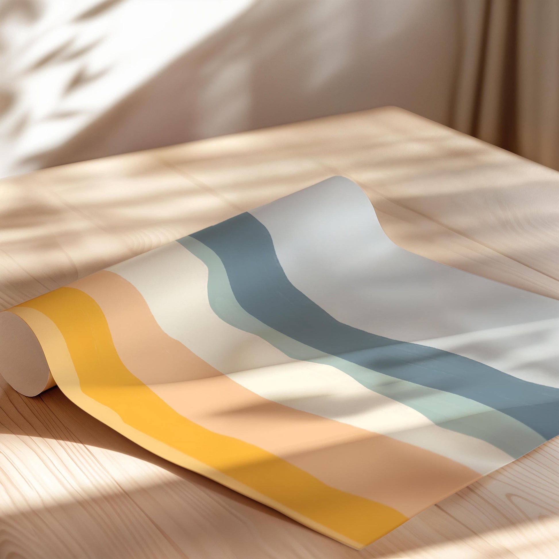 Abstract beach art print with soft layers of blue, sand, and gold. A modern seascape design that brings a calm coastal feel to any space. Perfect for living rooms, bedrooms, or beach house decor.