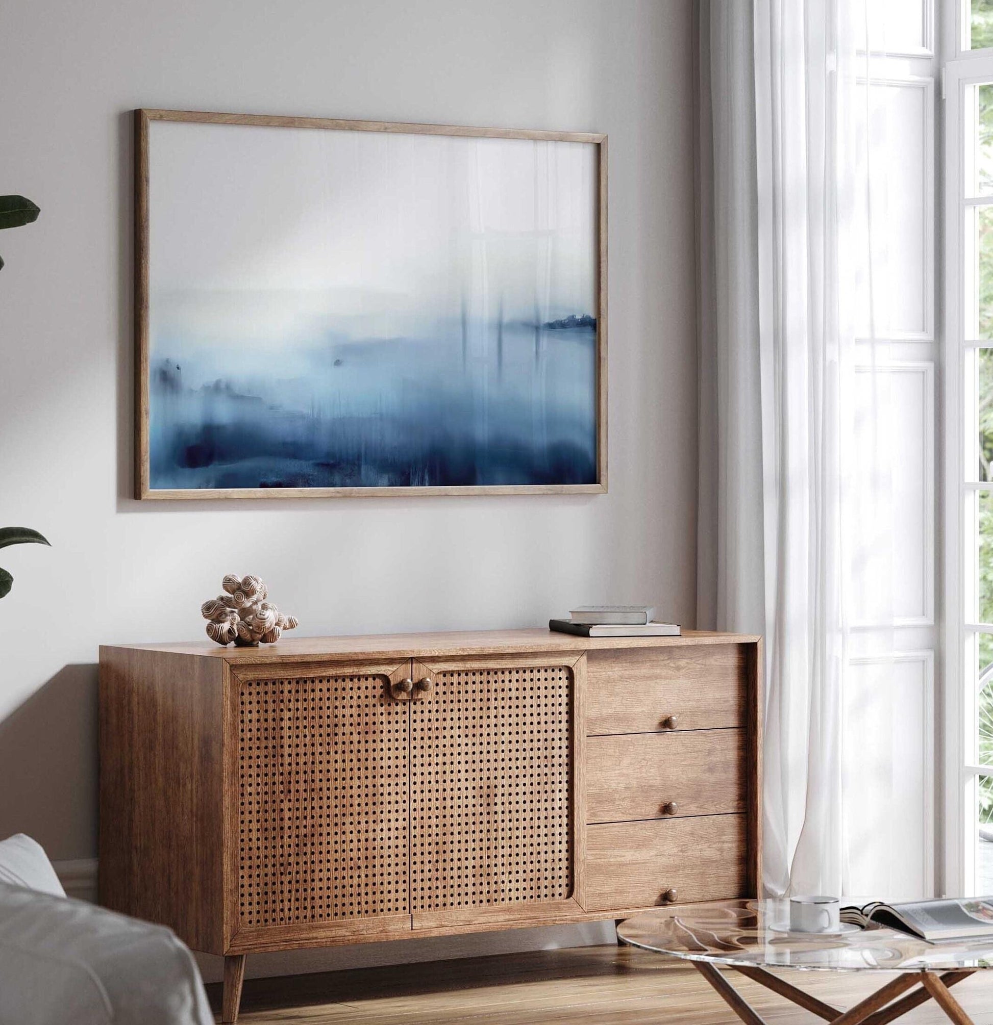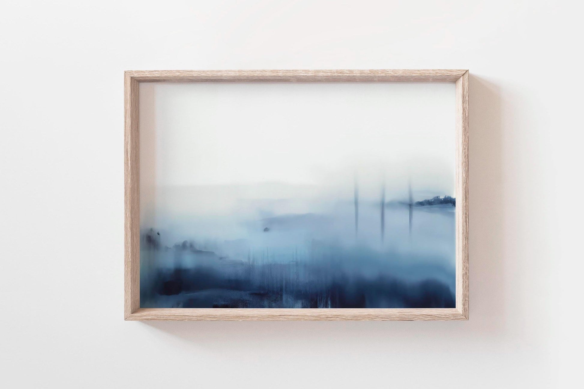 A soothing abstract print in soft blue tones, inspired by seascapes and coastlines. This watercolor brings calm and atmosphere to any room. Ideal for bedrooms, living spaces, or beach-themed decor.