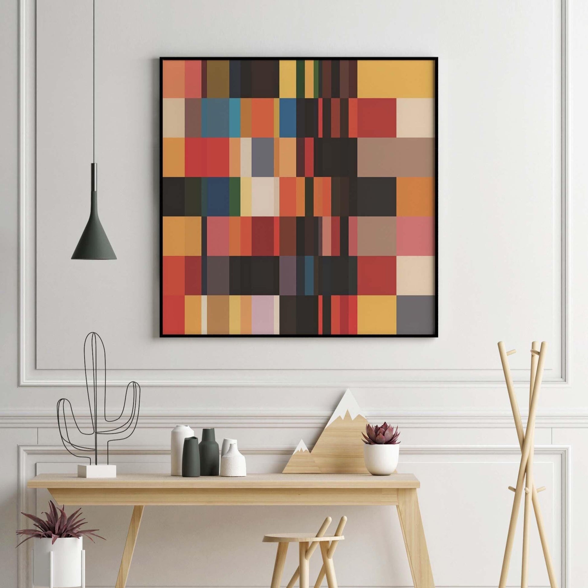 A bold and colorful abstract square art print with a modern grid design. Perfect for adding interest and style to any room. Great for living spaces, offices, or gallery walls.