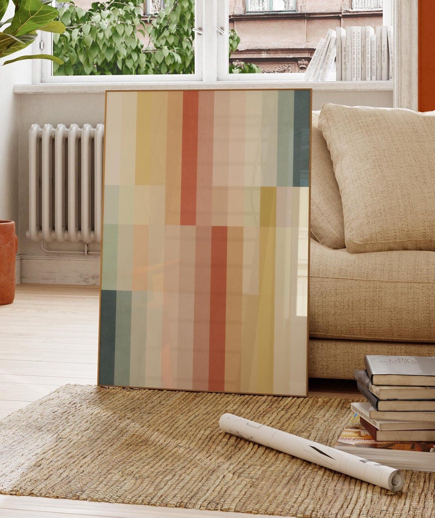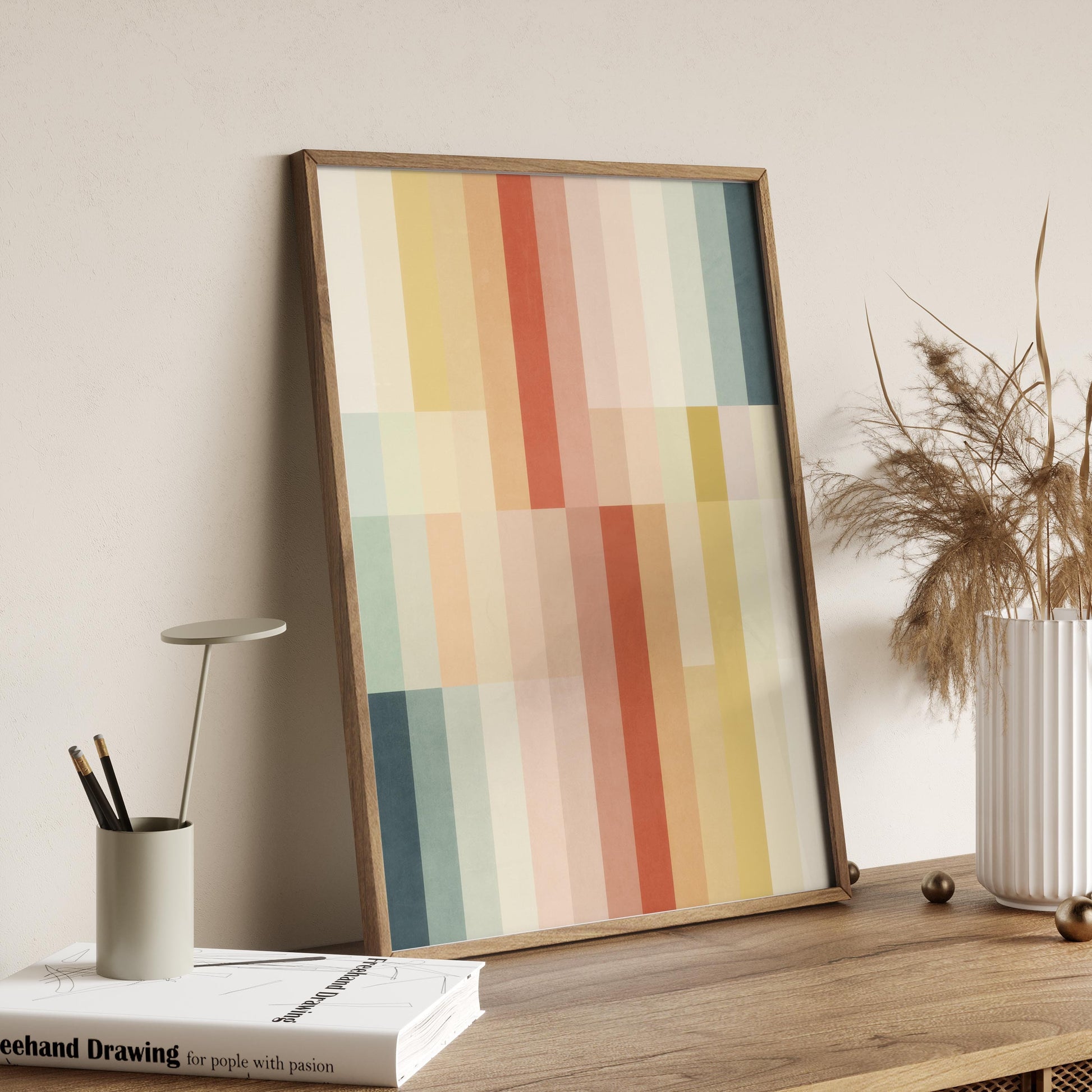 Gorgeous Boho Modern Colorful Lightly Textured Abstract Wall Art Print. The style is both Fun and Trendy and would fit either a Danish/Scandinavian setting or a Modern Nursery or Creative Space.