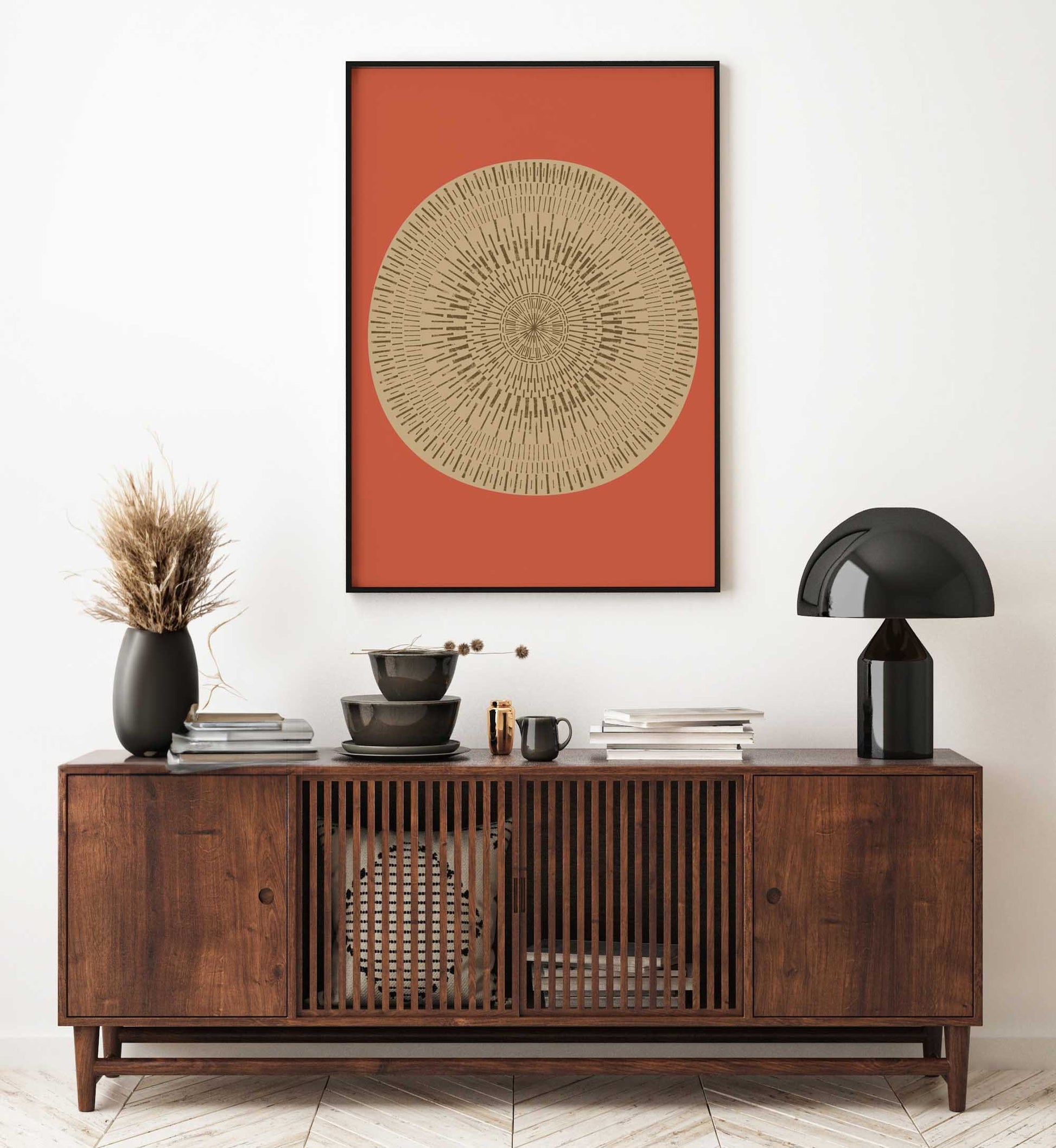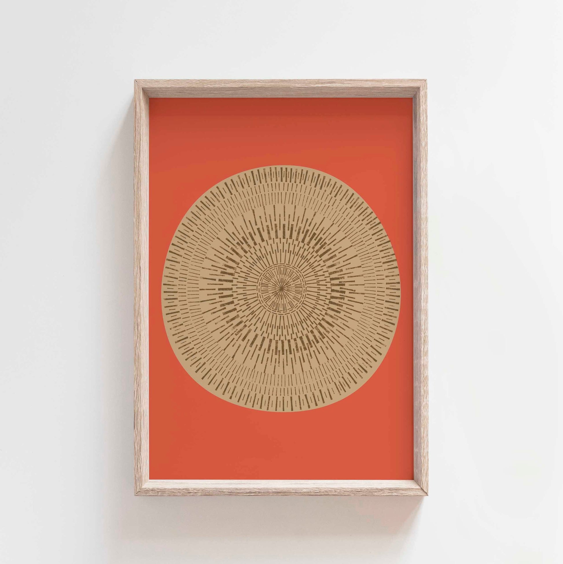 This is a Gorgeous Peachy Pink/Orange and Cream Mark-Making / Abstract Sun art print. It would fit either a Danish/Scandinavian setting or a Bedroom, or Creative Space.