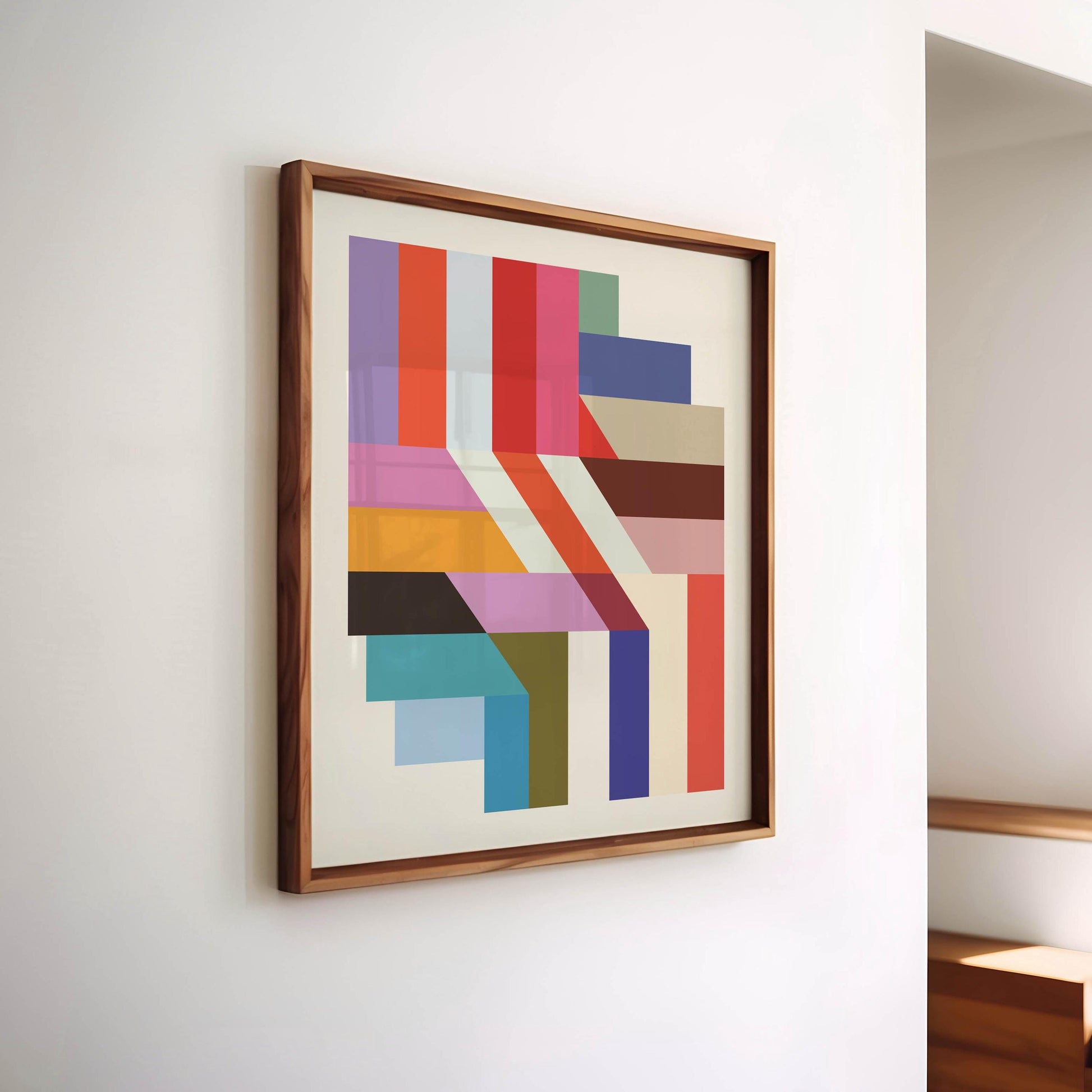 Large bold colorful abstract geometric square wall art print. The style is both fun and trendy and will add a dash of style to any room in your modern home.