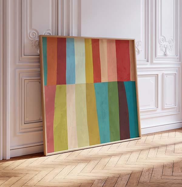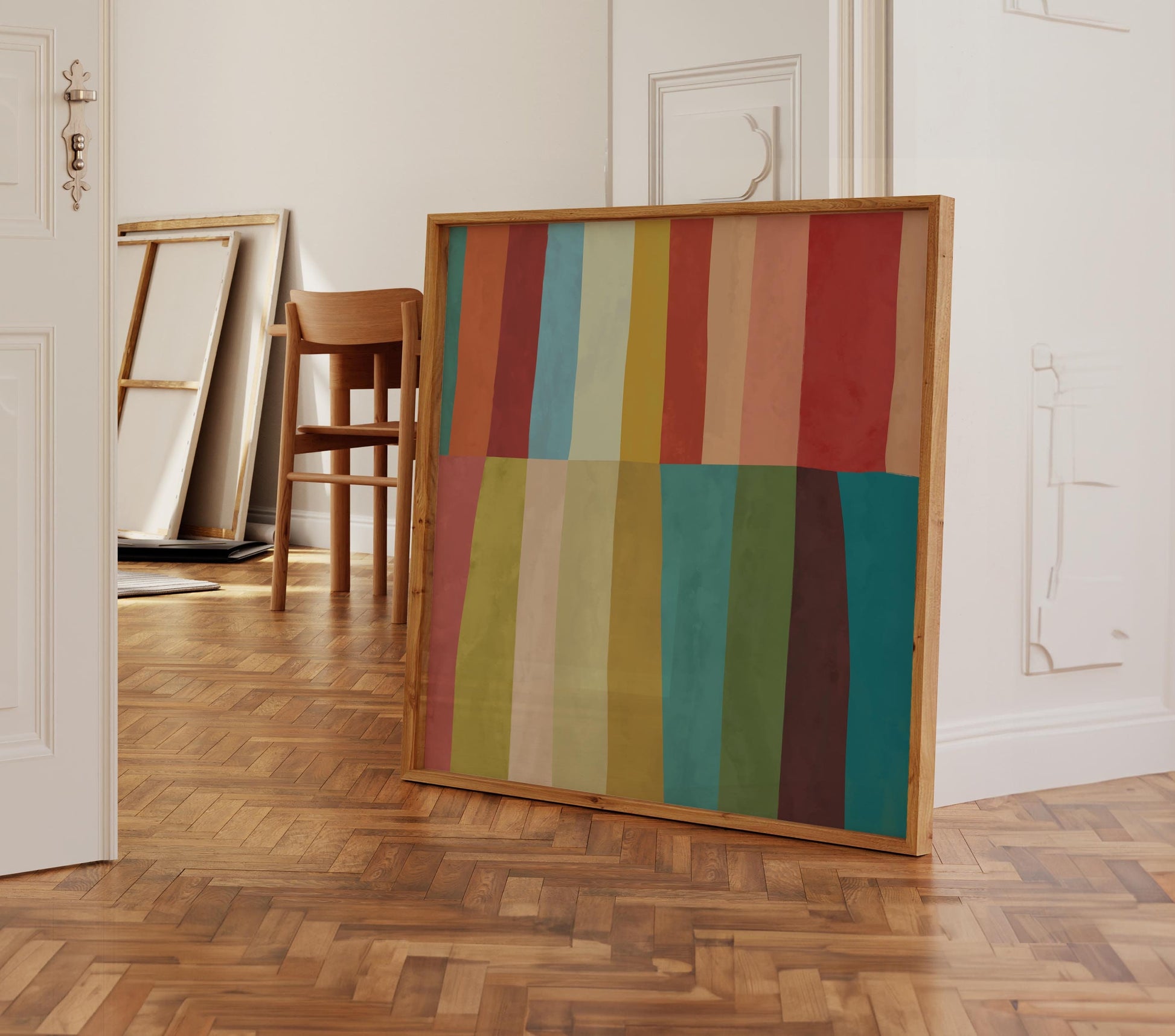 Add a splash of color with this striped abstract square print. Soft, abstract painting lines in warm and cool tones make it perfect for modern or creative spaces.