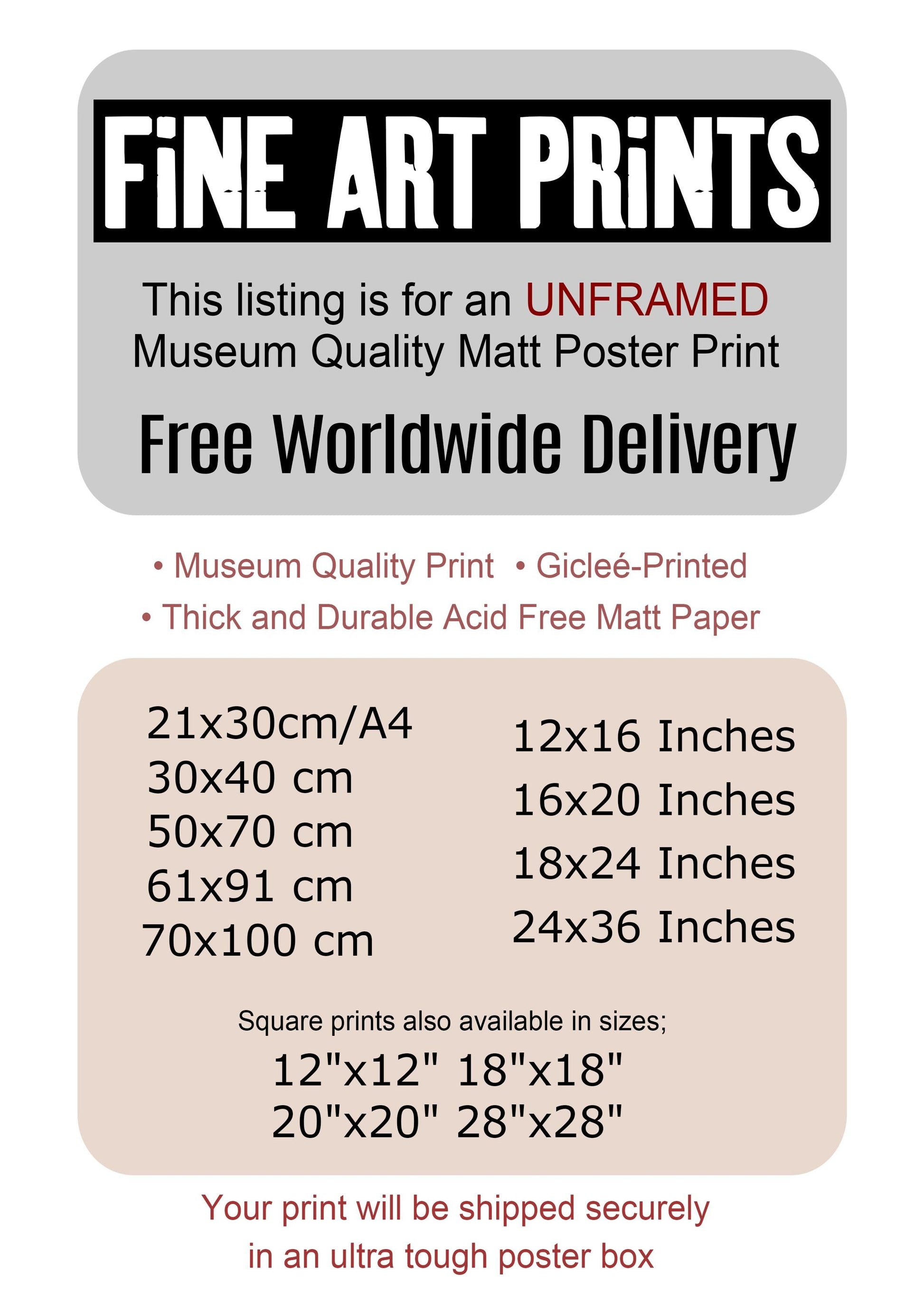 We offer FREE Shipping on all prints, to anywhere in the world from our Fulfillment Centers in the US, Mexico, Asia, Europe, and Australia.