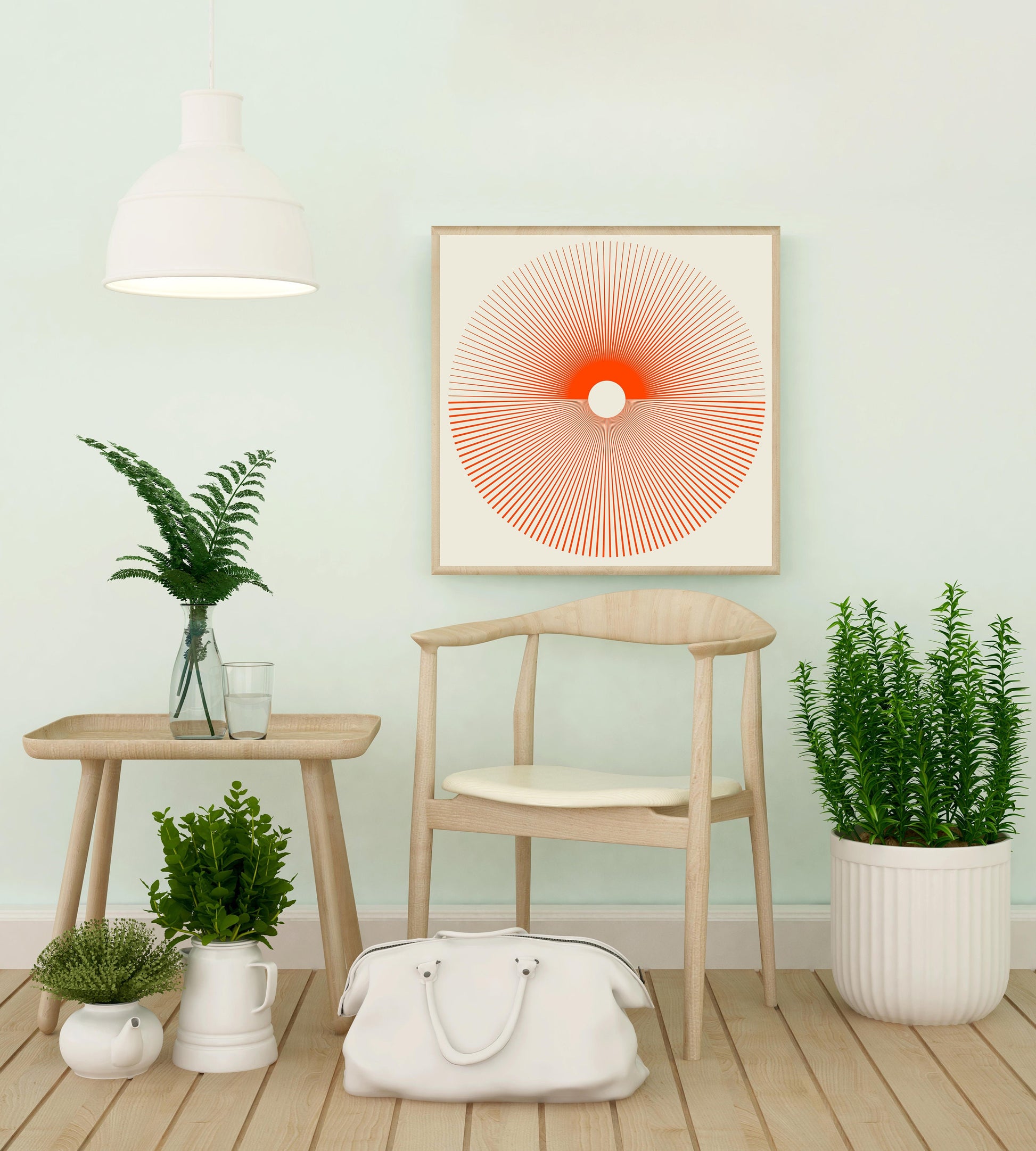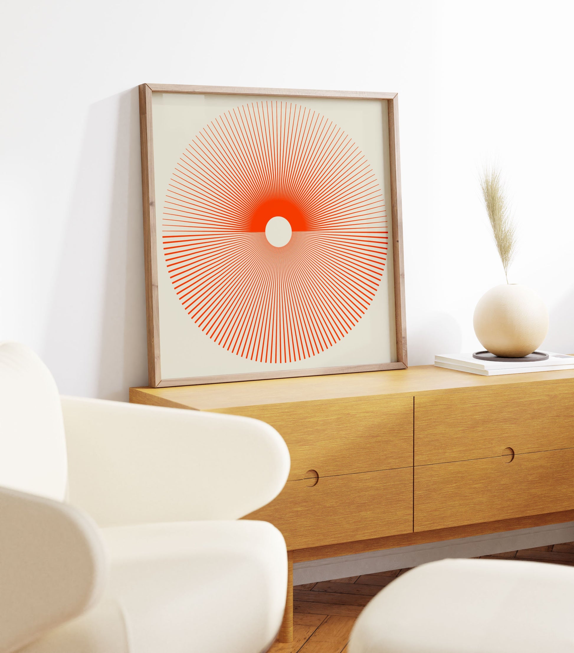 Ask a question about Red Sun Burst Print Sun Print Boho Sun Wall Art Modern Abstract Line Art Boho Modern Wall Decor Sunshine Print Mid Century Poster Square Art