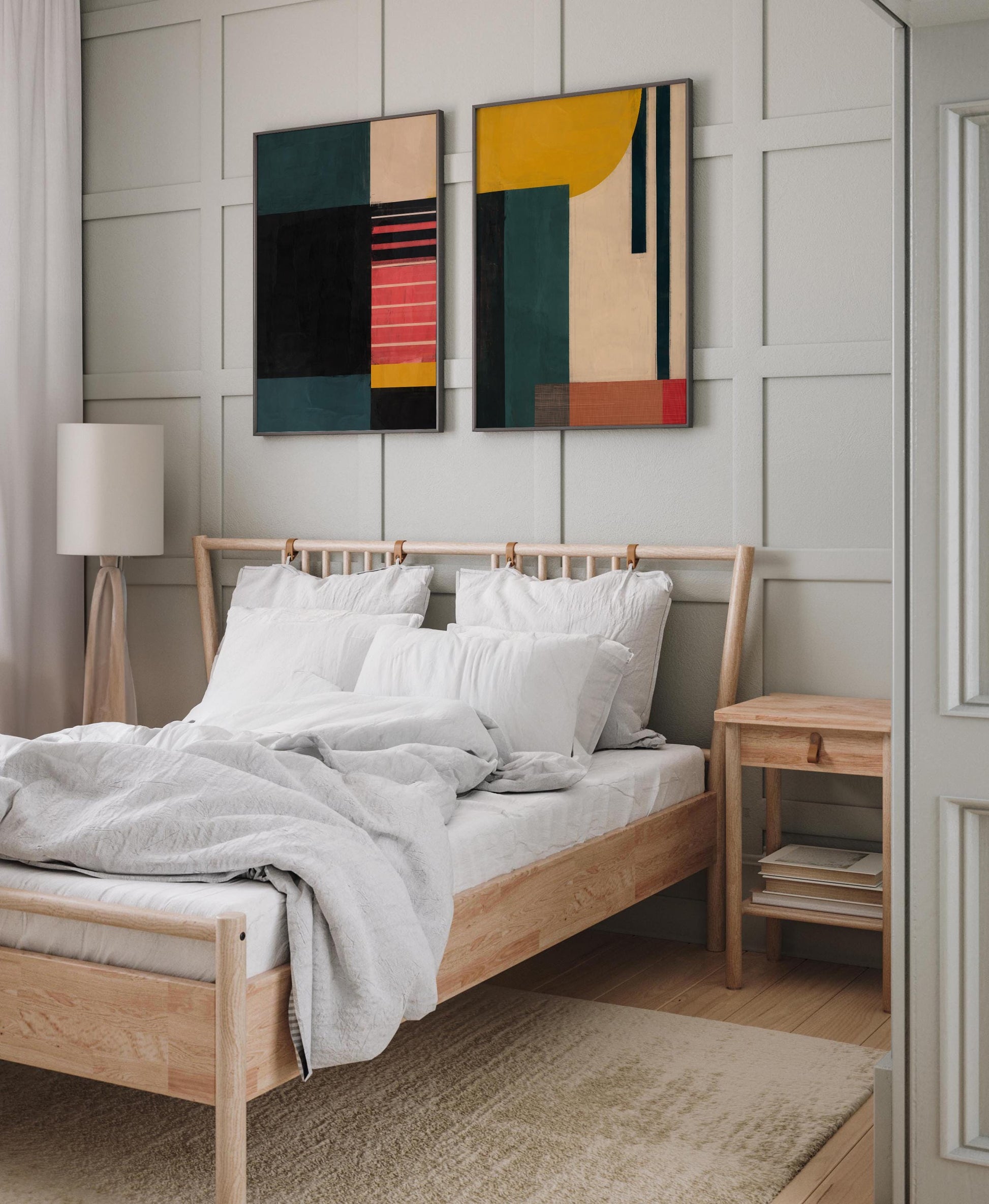 Set of 2 Abstract Mid Century Modern Painting Prints - Colorful Home Decor