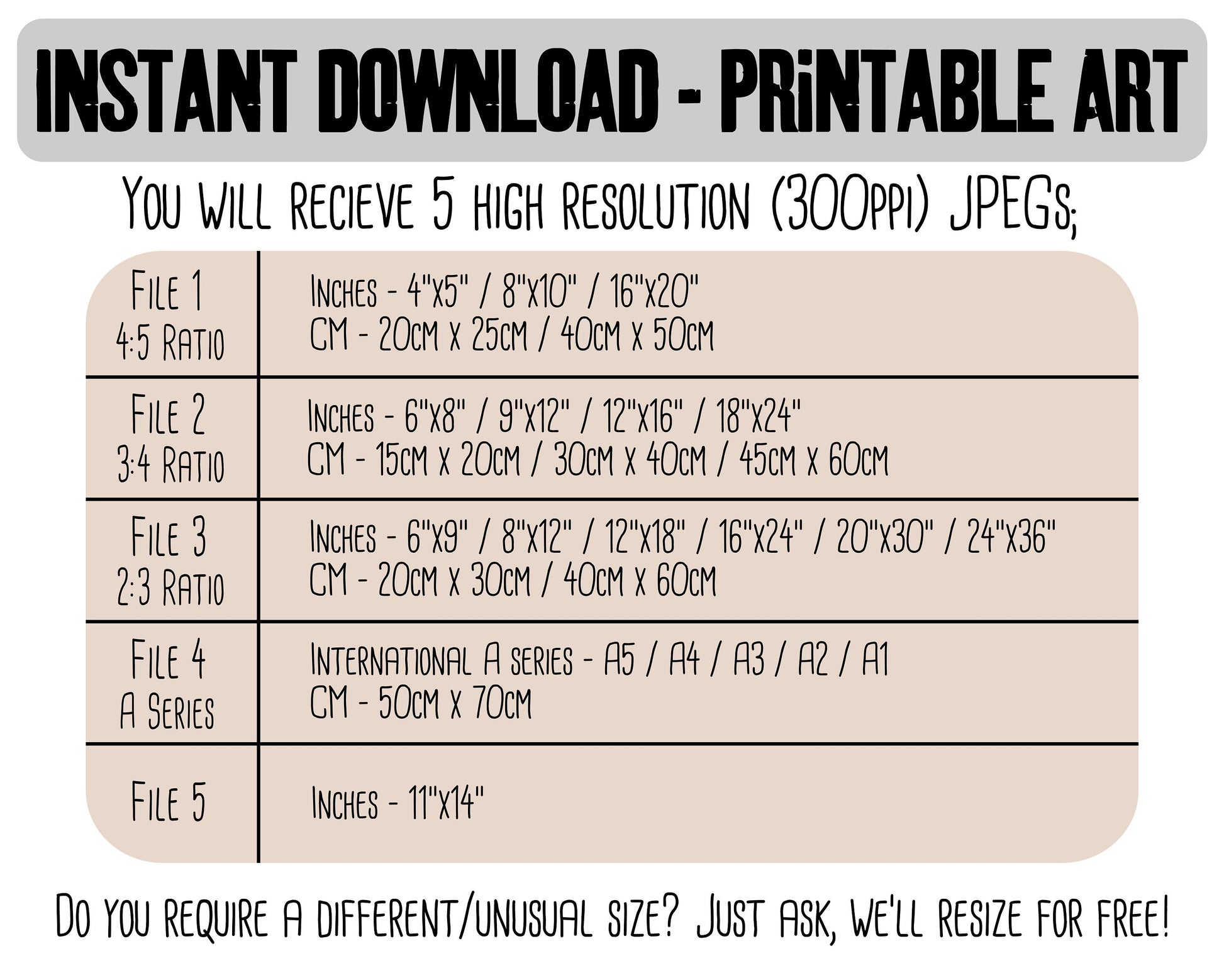 You will receive 2x5 files in a high-quality Jpeg format (300dpi) and a helpful printing instruction sheet.