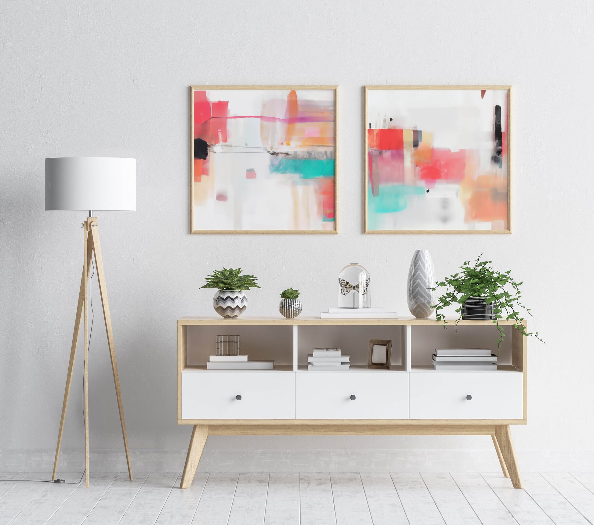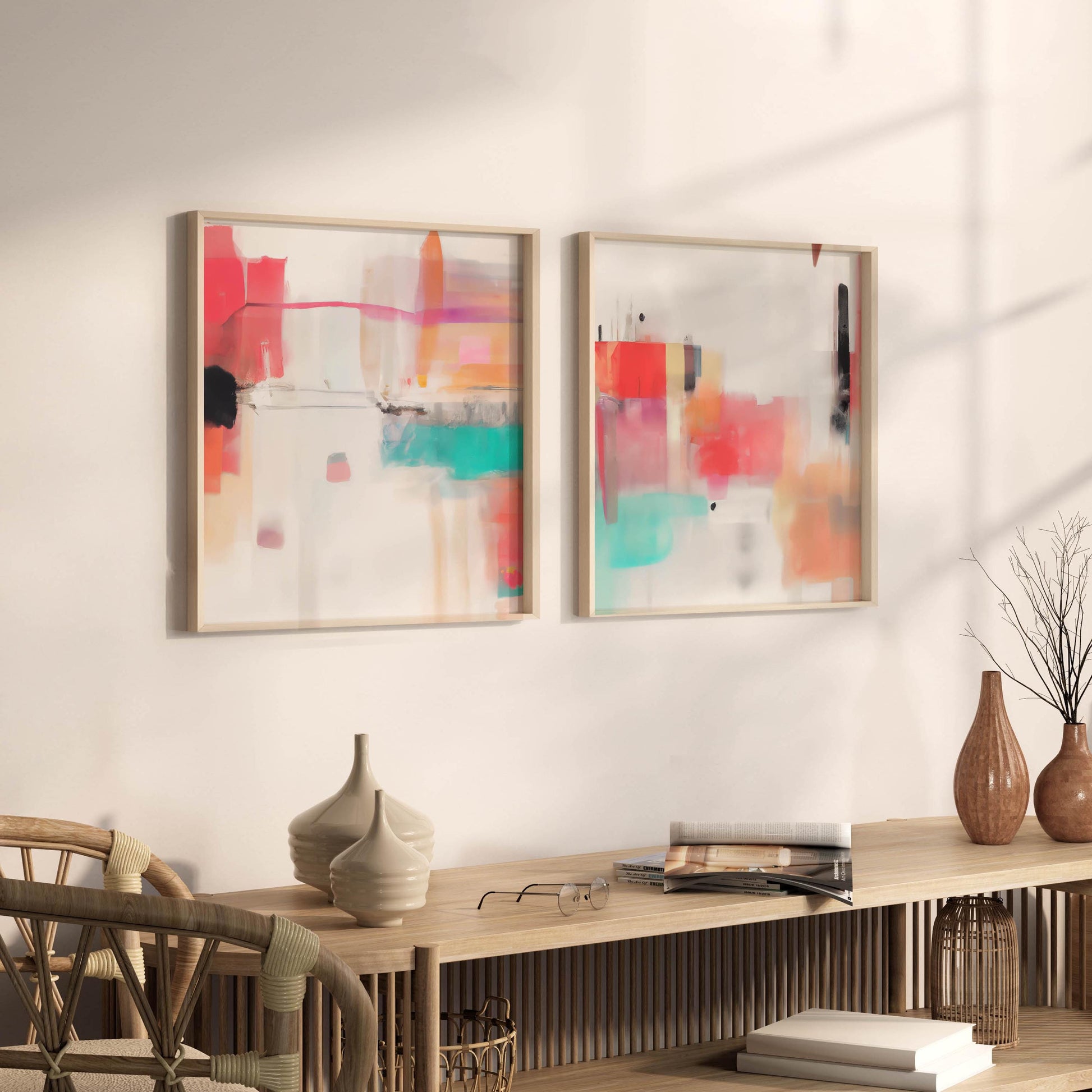 Set of 2 Boho Colorful Modern Paintings - Fun Abstract Square Digital Art Prints