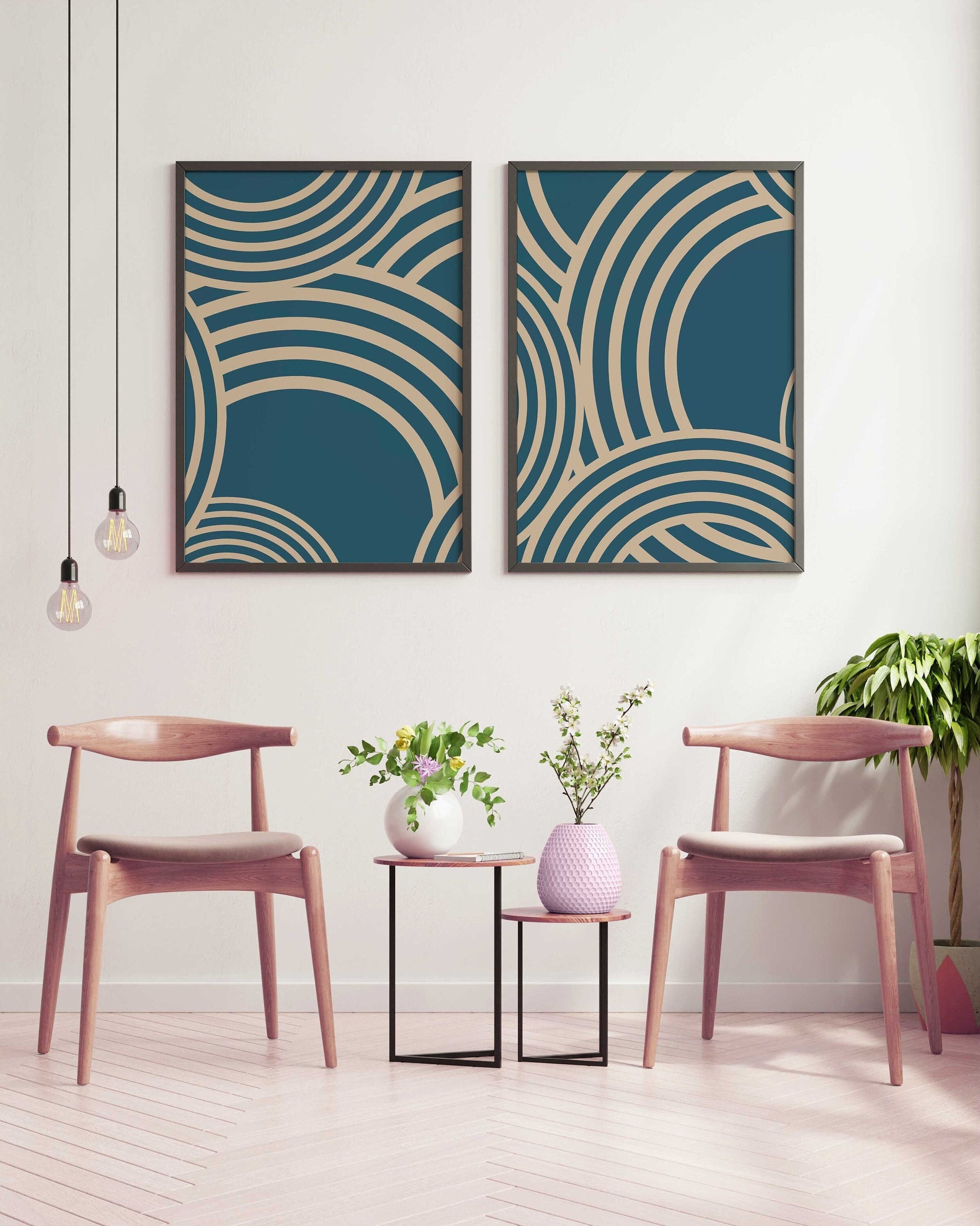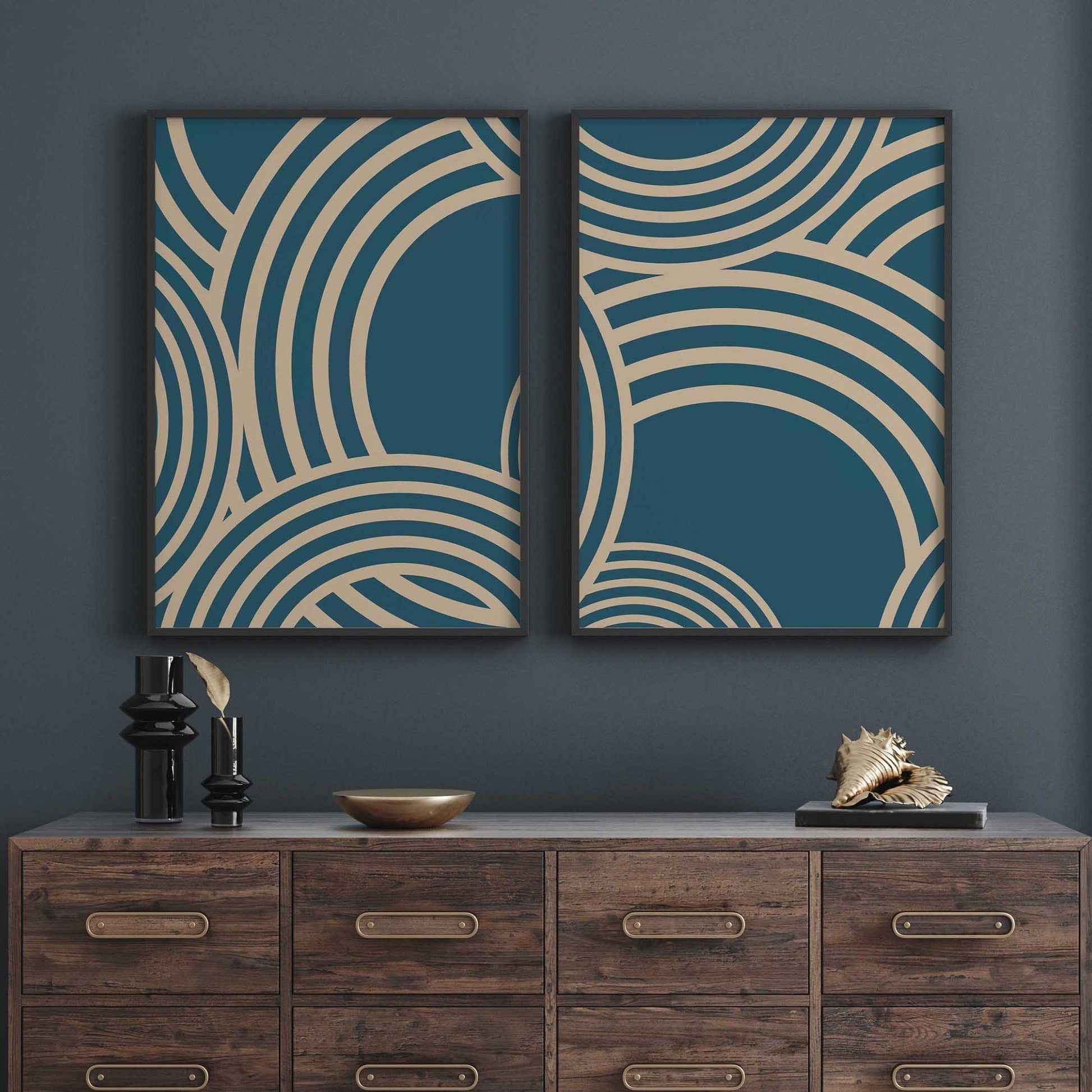 Unique Set of 2 Blue Geometric Abstract Wall Art Prints. These prints would look stunning in any nursery or kid's bedroom or indeed anywhere else in the home.
