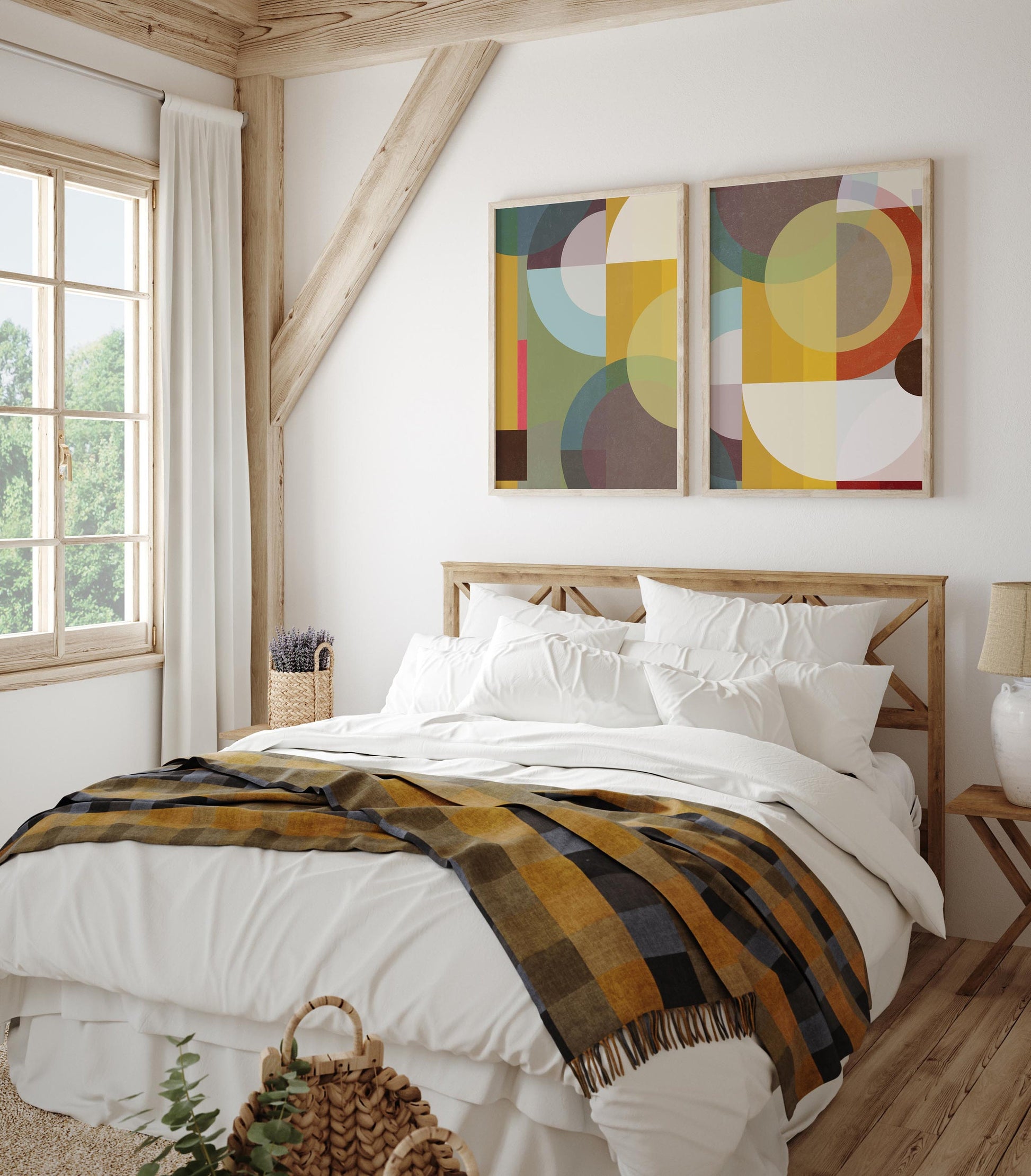 A Gorgeous Set of 2 Colorful Modern Color Block Abstract Prints with a Cool Retro Texture. This Design would look good in any location in the home especially in a Modern Living Room or in a Creative Office or Kid's Room.