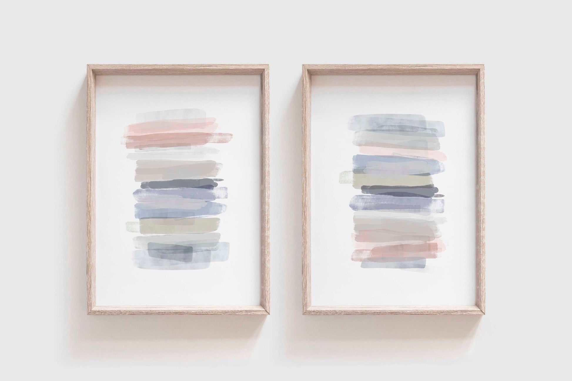 Set of 2 Pastel Colored Brush Stroke Wall Art Prints