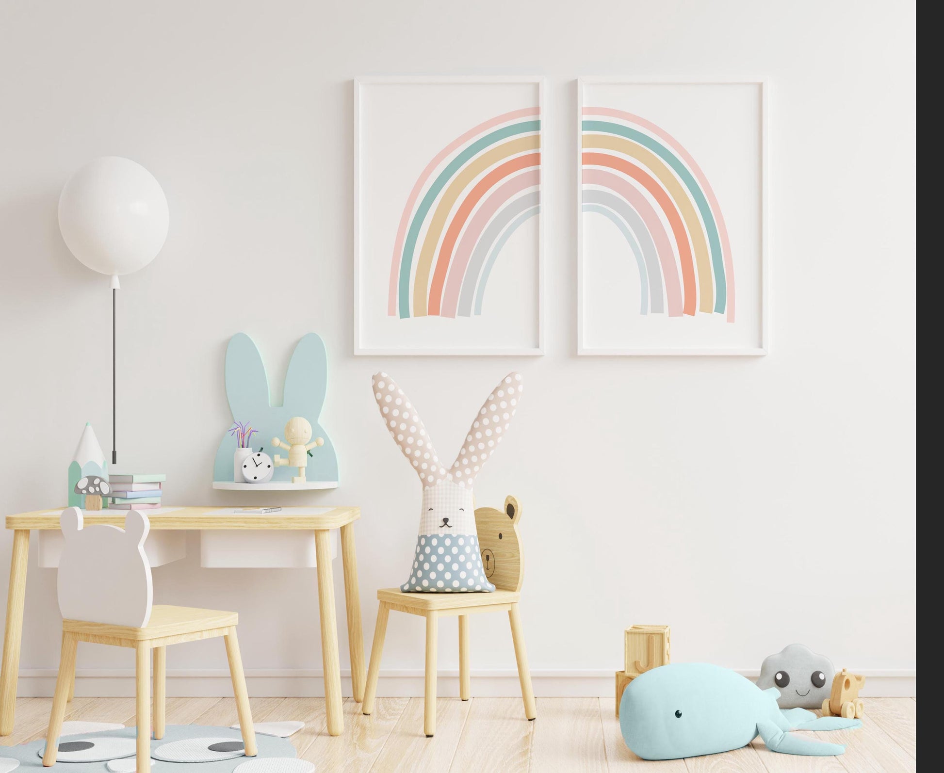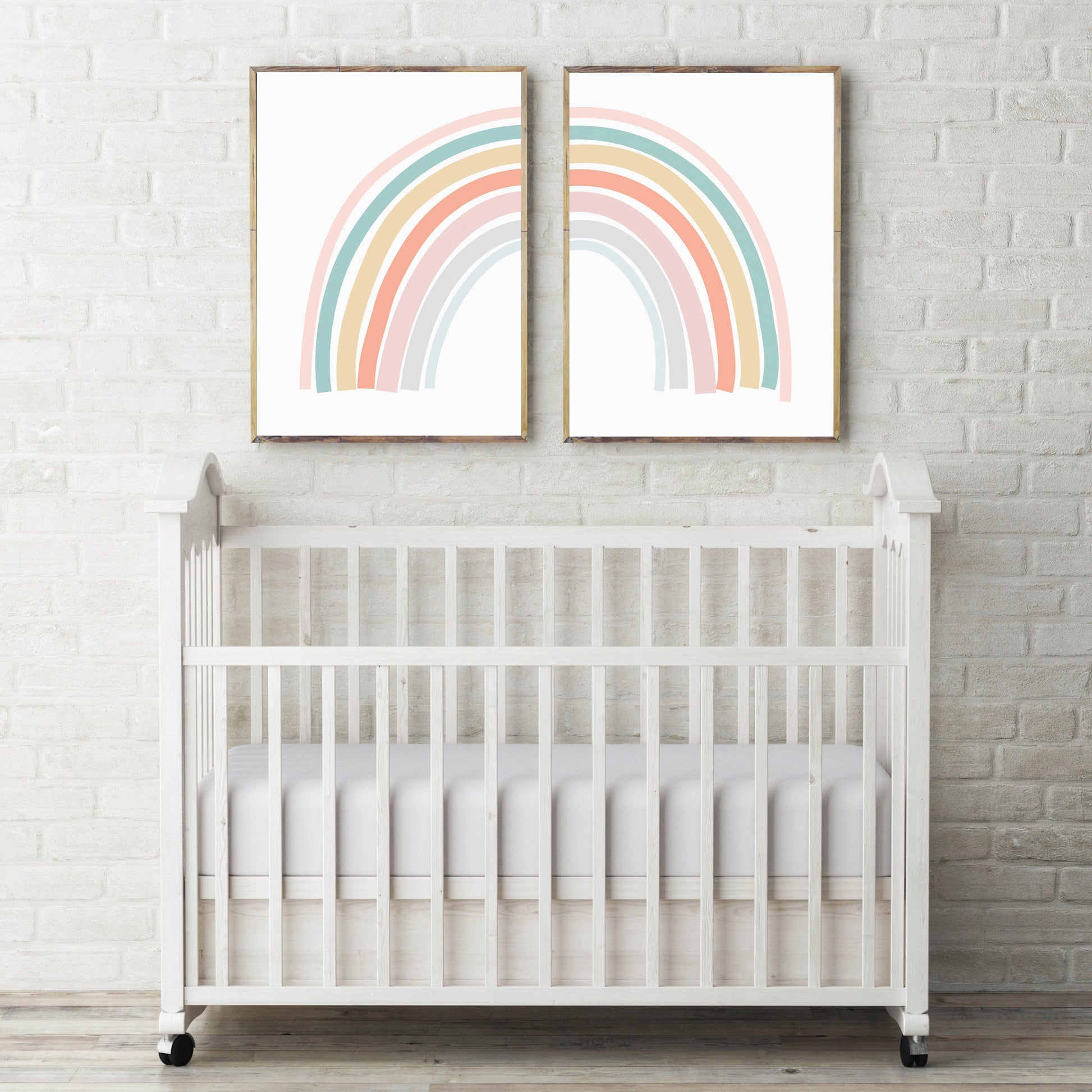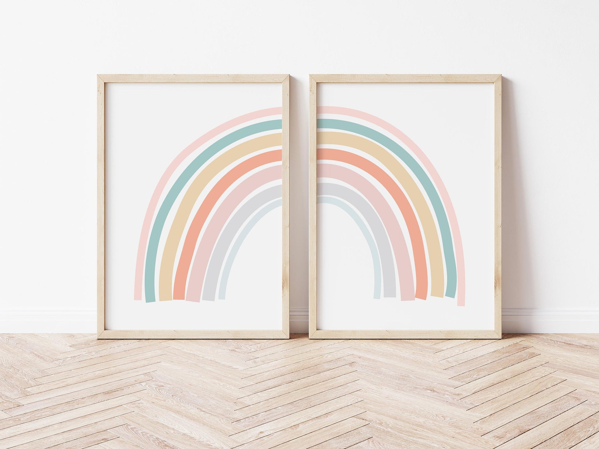 Cute Set of 2 Pastel Boho Rainbow Split Wall Art Prints. Perfect for Baby's Nursery, Kid's Wall Art, or Nursery / Todder's Bedroom.
