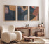 Set of 3 abstract art paintings with bold shapes and earthy tones. Perfect for modern boho style interiors.