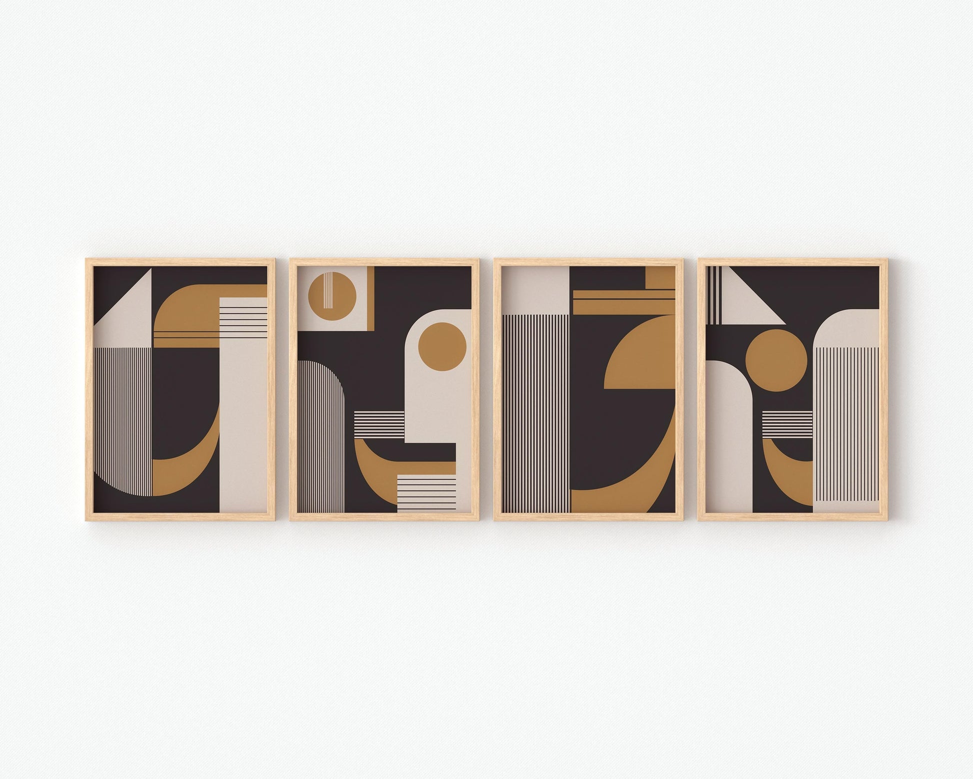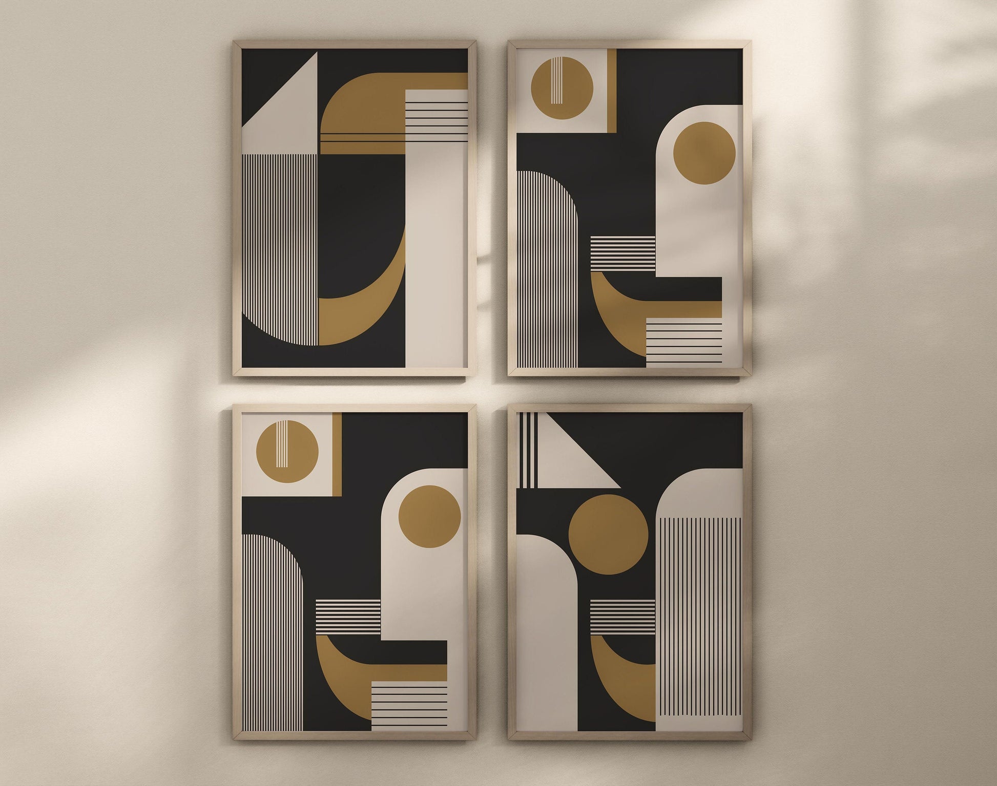 Set of 4 Grey and Neutral Bauhaus Abstract Art Prints