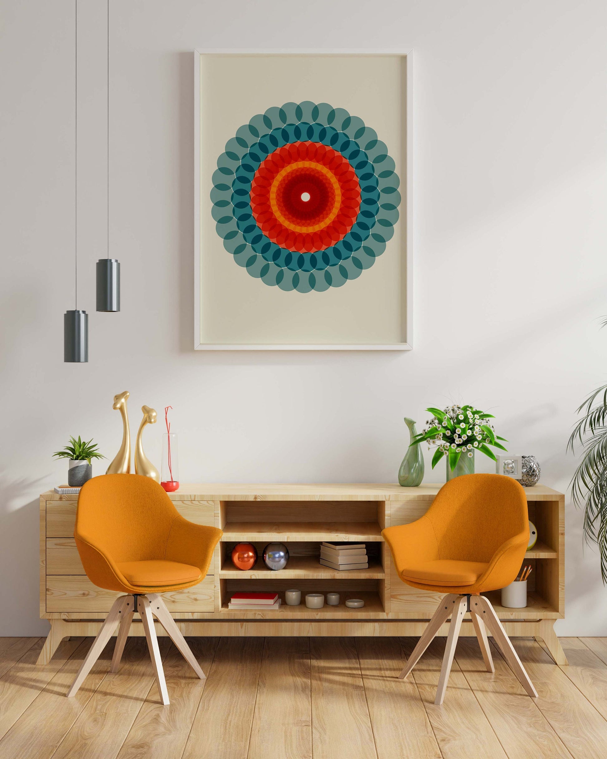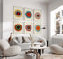 A cute set of 6 mandala style prints in fun, boho colors. A striking gallery wall for creative homes or offices.